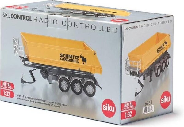 Professional op de bouwplaats met een groot laadvolumeDe nieuwe SIKUCONTROL 3-assige kipper-oplegger is de perfecte aanvulling op de SIKUCONTROL Volvo FH16 4x2 met Bluetooth besturing. Samen zijn ze de bouwprofessionals met een groot laadvolume. Met het origineel worden tot 30 ton asfalt, betonpuin, grind of zand vervoerd. Op schaal 1:32 kan de laadbak worden gekanteld, hierbij wordt automatisch de achterklep geopend. Wanneer de oplegger wordt afgekoppeld, kunnen de steunen mechanisch omlaag worden gedraaid.