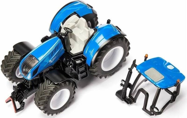 Ook binnenshuis zorgt de gedetailleerde vormgeving voor een echt tractorgevoel. De vooras wordt met behulp van een stuurpenbesturing bewogen, de motorkap kan geopend worden. De New Holland tractor is uitgerust met Siku standaardkoppelingen voor en achter en kan daardoor worden gecombineerd met accessoires uit de Siku Farmer serie.