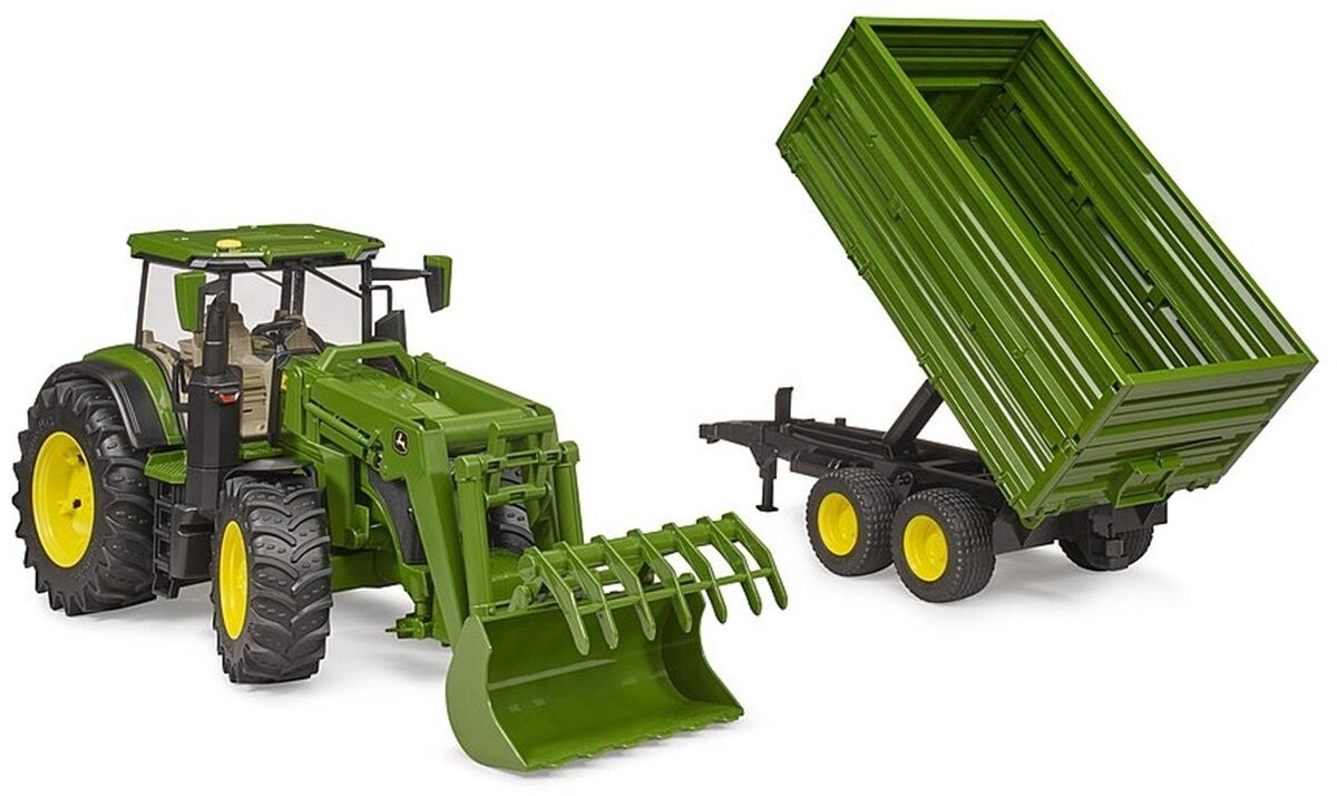 Bruder John Deere 7R 350 met voorlader en aanhanger (03155)