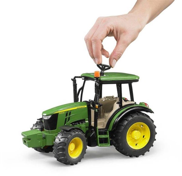 Op een boerderij kan je niet zonder tractor. Met deze John Deere kan je niet alleen snel van de ene naar de andere kant van de boerderij rijden, maar je kan er ook allerlei werkzaamheden mee uitvoeren! Je kan het frontgewicht vervangen door een frontlader (niet inbegrepen), je kan een aanhanger (niet inbegrepen) aan de achterkant vastmaken of je kan het allebei tegelijk doen. Zo kan je je veld bewerken en onderhouden, gewassen verzorgen en oogsten of je dieren vervoeren of verzorgen. In de tractor kan je een bworld figuur (niet inbegrepen) zetten en met een extra stuur (niet inbegrepen) kan je de tractor door het dak heen besturen. Perfect voor op jouw boerderij dus!