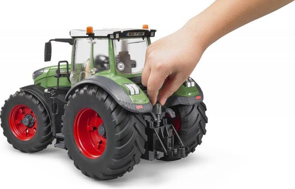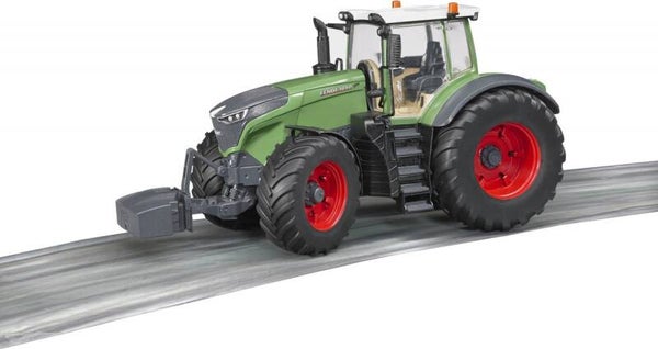 De originele Fendt 1050 Vario tractor is een ongelooflijk grote machine die is nagemaakt op een schaal van 1:16. Met de afmetingen 45,6 x 19,8 x 22,5 cm (L x B x H) is deze Fendt 1050 Vario van Bruder de grootste speelgoedtractor in deze reeks. De tractor is uitgevoerd met veel realistische onderdelen die het speelplezier verhogen. Nieuw aan dit model zijn de vervangbare wielen, waardoor de tractor gecombineerd kan worden met andere mechanische onderdelen. Het is ook mogelijk om de motorkap te openen om naar de motor te kijken en de deurtjes kunnen worden geopend om figuurtjes in- en uit te laten stappen. De Fendt Vario 1050 van Bruder kan worden bediend door een extra stuurknuppel die kan worden aangebracht via de zonnekap van de tractor. De speelgoedtractor heeft een afneembaar voorgewicht, dat gemakkelijk kan worden verwijderd, zodat de tractor met een groot aantal hulpstukken kan worden gecombineerd. Aan de achterkant zit de standaard Bruder aansluiting om hulpstukken aan de tractor te koppelen. De vooras van de Fendt beweegt onafhankelijk van de achteras, waardoor de tractor goed te besturen is op ongelijk terrein. Dankzij het stevige materiaal is de tractor geschikt voor binnen- en buitengebruik. Dit model is geschikt voor kinderen van 3 jaar en ouder.