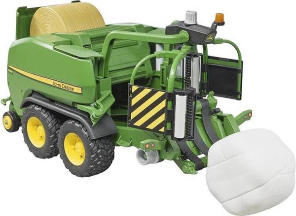 Deze John Deere balenpers kan achter alle Bruder tractors gekoppeld worden. De machine is voorzien van bewegende wen werkende delen, zodat spelen nog leuker is. Inclusief een geperste baal en een gewikkelde baal.