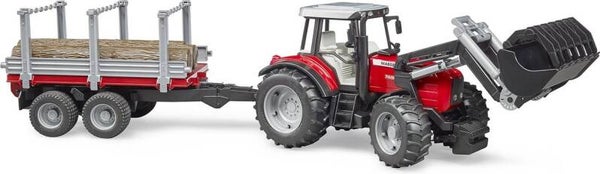 Bruder Massey Ferguson 7480 met aanhanger en boomstammen (02046)