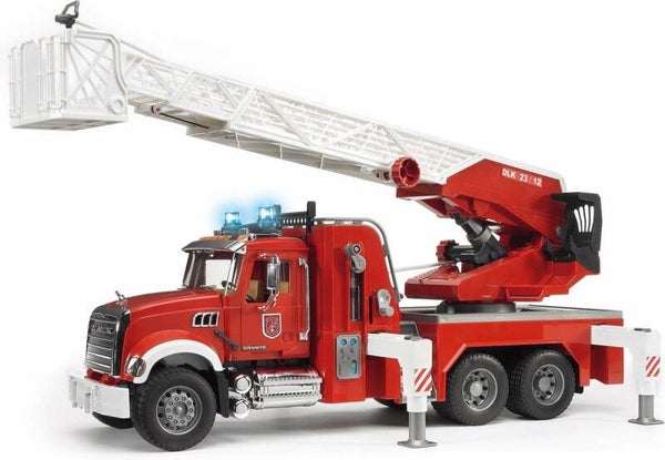 Wat is er spannender dan het spelen als brandweerman? Leef je dan uit met deze Bruder Mack Granite brandweerladderwagen met waterpomp. Deze wagen is voorzien van een geïntegreerde watertank die gemakkelijk kan worden gevuld. De cabine heeft twee zitplaatsen en er is ook een plek voor een Bruder figuur op de ladder. Vier uitschuifbare steunpoten zorgen in elke situatie voor stabiliteit van het voertuig en het heeft een groot opbergvak met een deur die ingeklapt kan worden, waardoor er extra ruimte voor het opbergen van gereedschappen is. Geschikt voor kinderen vanaf 4 jaar.