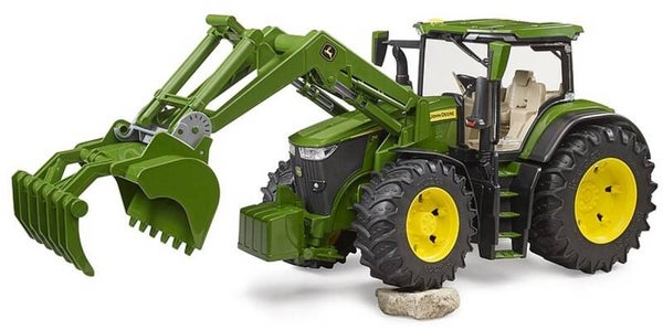De John Deere tractor is uitgerust met veel realistische details. De motorkap gaat open en onthult de imposante motor. Deuren kunnen geopend worden en bieden plaats aan de optioneel verkrijgbare Bworld figuren in een moderne cabine. Kenmerkend voor Bruder is de uitstekende bestuurbaarheid en het rijcomfort door de ingebouwde pendelas en de stuurverlenging die door het schuifdak kan worden gebruikt. Voor nog meer speelplezier is deze tractor voorzien van bijpassende voorlader.