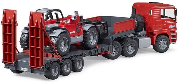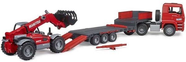 De stevige dieplader maakt het mogelijk om grote machines te vervoeren. Zo ook de Manitou MLT 633. Met deze Manitou MLT 633 wordt elke klus op zowel de grond als in de hoogte kinderspel! De verreiker kan op de hoogste plekken komen om verschillende voorwerpen te grijpen. De arm van de Manitou is te bedienen met verschillende knoppen voor een zo realistisch mogelijke speelervaring.