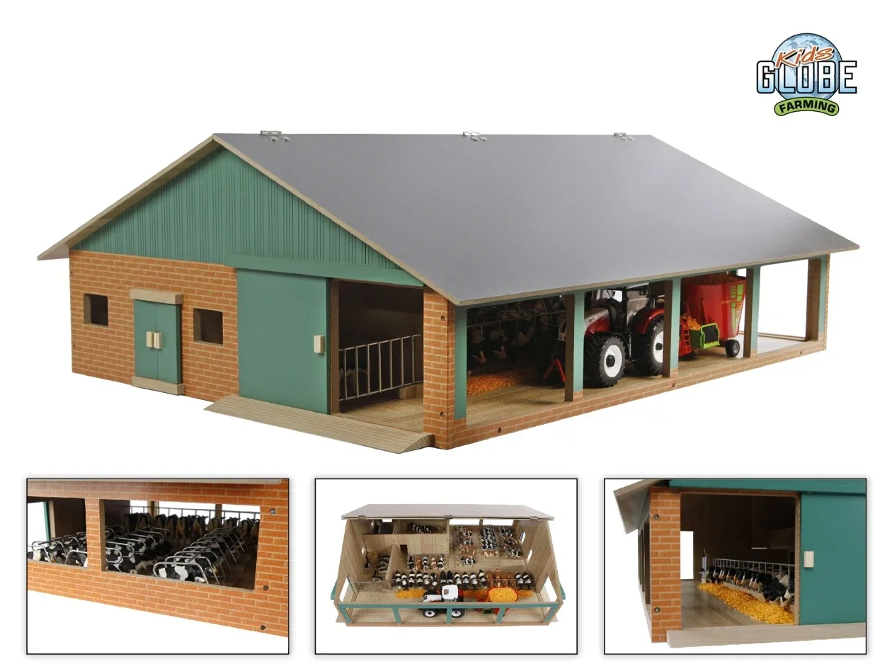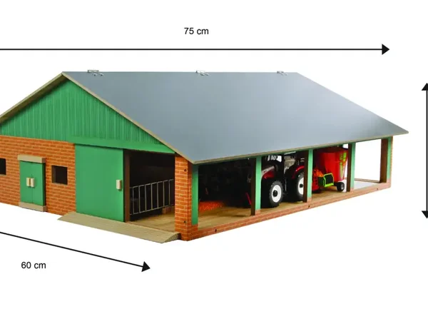 Grote loopstal van Kids Globe voor je koeien. De stal heeft verschillende ruimtes en je tractor kan langs de stal rijden om het voer neer te leggen. Het dak is te openen, zodat je overal goed bij kunt. Exclusief accessoires. Past bij al het speelgoed van Kids Globe op schaal 1:32.