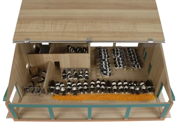 Kids Globe ligboxenstal met melkunit 1:32 75x60x26,5cm