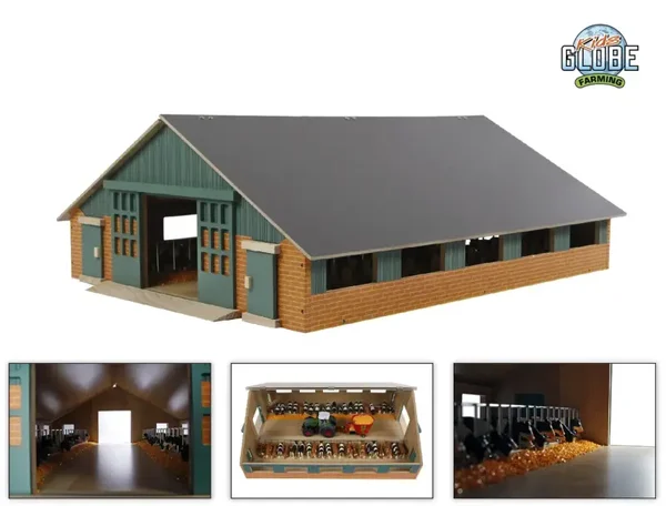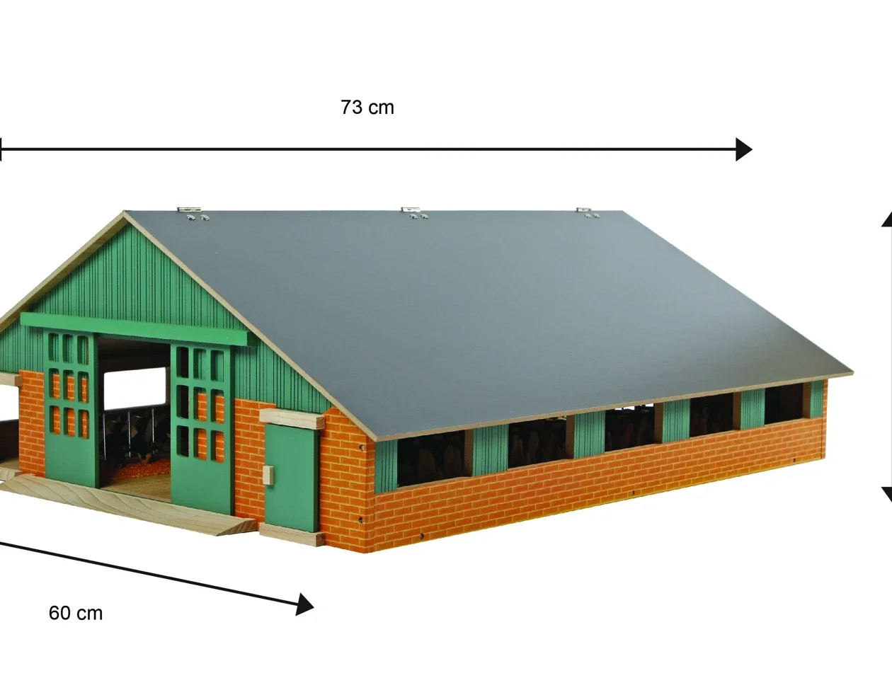 Mooie houten loopstal met aan beide kanten twee deurtjes en een grote dubbele schuifdeur. Met diverse hekken. Het dak van de stal kan open zodat je er makkelijk boerderijtje mee kunt spelen. Deze houten boerderij wordt geleverd exclusief accessoires.