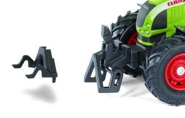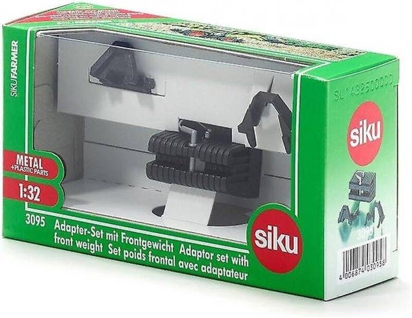 Accessoire dat bestaat uit een adapterset voor de voor- en achterkoppeling van de 1:32 SIKU Farmer-tractoren en een frontgewicht van metaal. De adapterset draait de werkwijze van de voor- en achterkoppeling van de SIKU Farmer 1:32 tractoren om. Zo kunnen werkgereedschappen aan de voorzijde of het frontgewicht ook aan de achterkoppeling worden gemonteerd.