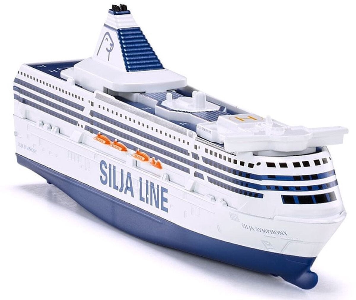 Siku 1729 - Siku 1729 Cruiseveerboot Silja Symphony (1:1000)(SK1729). Veerboot met een cruisesfeer. Sinds 1991 vaart de Tallink Cruise veerboot voornamelijk op de route Helsinki - Mariehamn - Stockholm in de Oostzee. Bij de ingebruikname was de Silja Symphony met 203 meter de grootste cruiseveerboot ter wereld en de eerste cruiseveerboot met een doorlopende promenade over de gehele lengte van het schip. Het imposante schip neemt maar liefst 450 auto's en 2.852 passagiers aan boord. Ze genieten van de cruisesfeer op de route door de Oostzee. De Siku Cruise veerboot Silja Symphony is gemaakt van metaal met kunststof onderdelen. Let op: Het Siku model is niet drijvend. De Siku veerboot is schaal 1:1000.